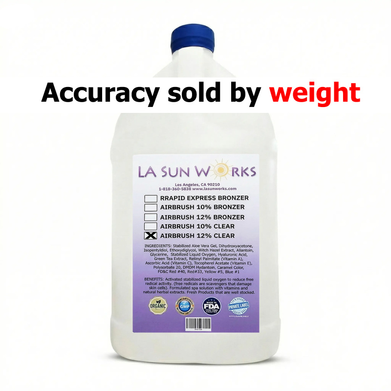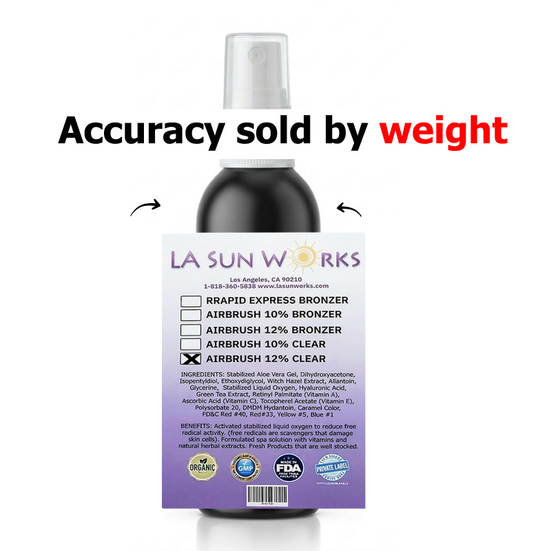DHA 10%, shower after 4-6+ hours, for a medium dark spray tan, for most skin types including 1 through 5 skin types. For all airbrush, HVLP, automatic sprayer systems. (Custom and private/white label solutions available.)