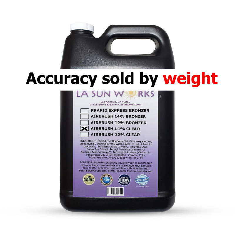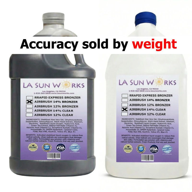 DHA 10%, shower after 4-6+ hours, for a medium dark spray tan, for most skin types including 1 through 5 skin types. For all airbrush, HVLP, automatic sprayer systems. (Custom and private/white label solutions available.)