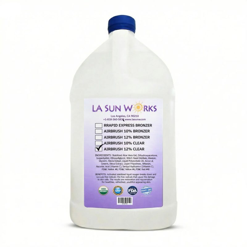 DHA 10%, shower after 4-6+ hours, for a medium dark spray tan, for most skin types including 1 through 5 skin types. For all airbrush, HVLP, automatic sprayer systems. (Custom and private/white label solutions available.)