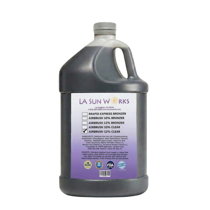 DHA 10%, shower after 4-6+ hours, for a medium dark spray tan, for most skin types including 1 through 5 skin types. For all airbrush, HVLP, automatic sprayer systems. (Custom and private/white label solutions available.)